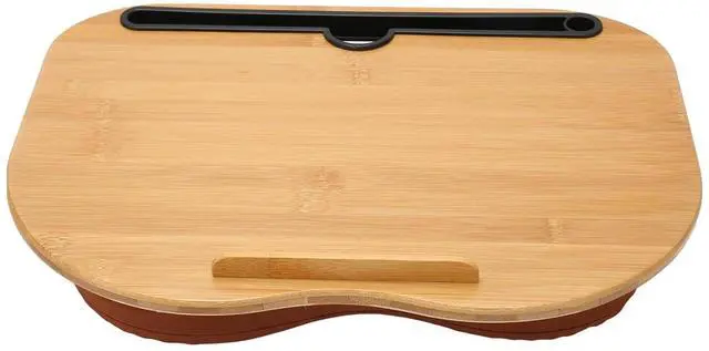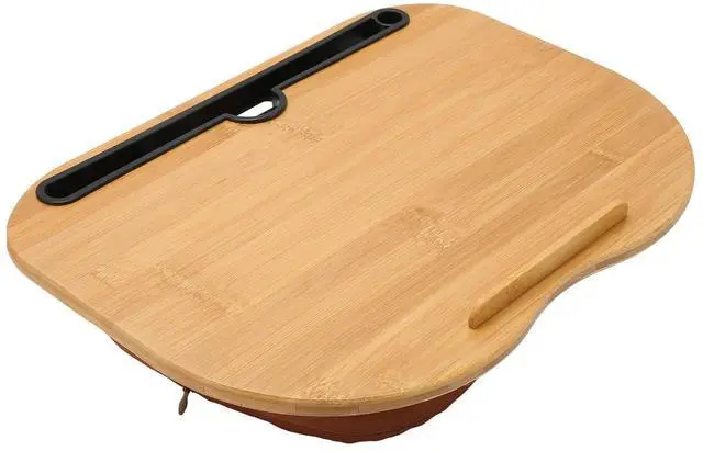 [COMFORTABLE KNEE ] - The cushioned base of the laptop desk keeps your knees comfortable and relaxed while you work or study. ^^ [VERSATILE USE] - for use in bed, on the sofa, outdoors, and in the car to work, watch movies, or read books. ^^ [SLEEP PILLOW FUNCTION] - The cushioned base can be used as a sleep pillow for resting during work or. ^^ [PREMIUM BAMBOO WOOD MATERIAL] - Made of, and scratch-resistant bamboo wood for a and long-lasting design. ^^ [ANTI-SLIP AND PORTABLE] - Features an anti-slip strip to ensure the safety of your device and is lightweight for easy portability.