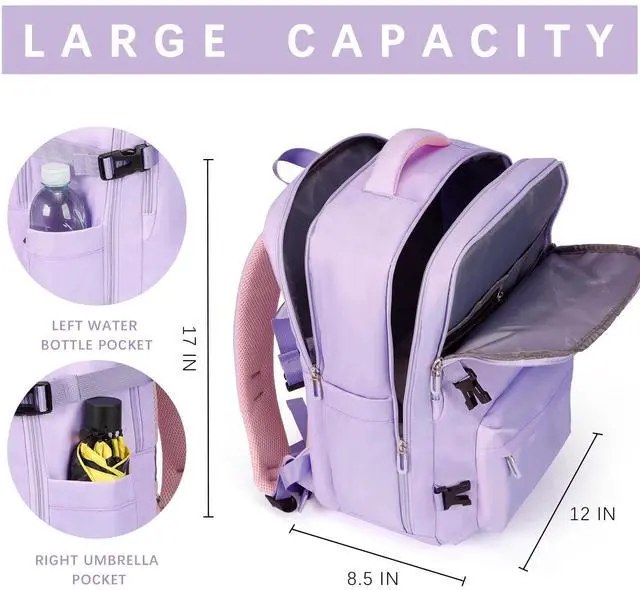 SHRRADOO Travel Laptops Backpack for Women Men, Casual Work Bag 17inch High School College Backpack Airline Approved Backpack for Hiking Business (Light Purple)
