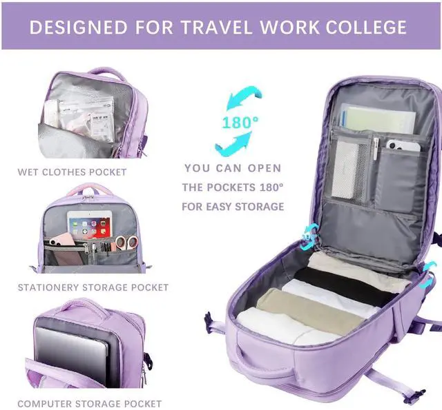 FLIGHT APPROVED: The 180 degree zipper closure of the travel backpack can help you quickly pass through security checks. Suitable for placing overhead luggage racks or under seats. This portable backpack makes your journey more enjoyable and convenient