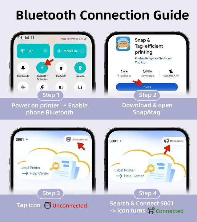 Great Power: This label maker machine can print up to 35 inches per minute (15 mm/s), allowing for quick and easy label creation; Equipped with a built-in durable 2000 mAh rechargeable battery, it offers long-lasting performance and extended standby time ^^