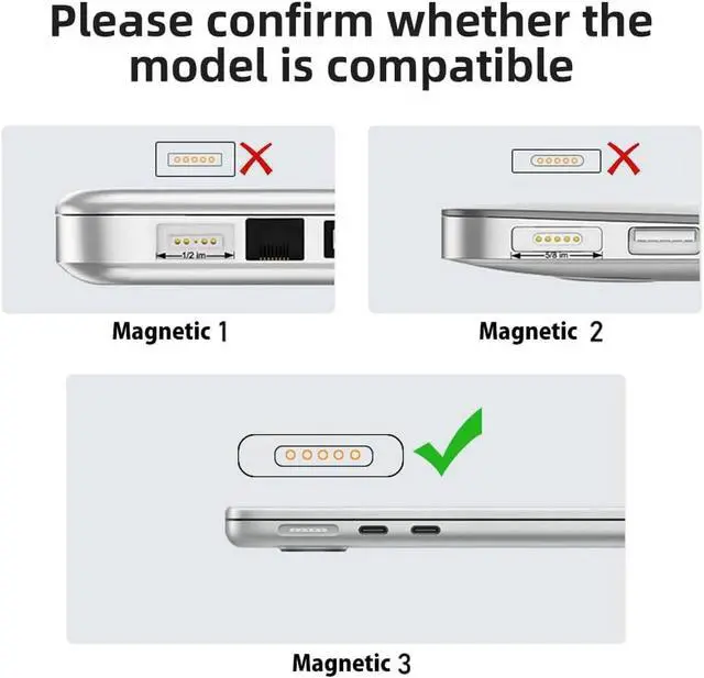 Second Step: Connect the Magnetic port to the device. The signal light turns on. 1. Please check models on the book and original power adapter before order.