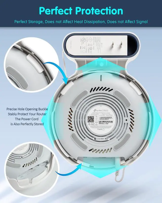 (Note: Deco BE23/BE25/BE3600/BE5000 router is not included) ^^ EXCELLENT CORD MANAGEMENTPETIMETI wall mount bracket for Deco BE23/BE25/BE3600/BE5000 wifi 7 router hide the cord in the wall mount bottom, the cord groove allows simple storage of excess cable, no messy wires any more, make your Deco BE23/BE25/BE3600/BE5000 wifi look clean and tidy ^^ EASY TO INSTALL AND MOVEDPut the Deco BE23/BE25/BE3600/BE5000 router and adapter on the wall mount bracket, and then place the wire in the back slot, no need any tools and screws to install and finish in 3 minutes. Suitable for any position as long as there is a socket, enjoy wifi anywhere at home, make your network settings easier and enjoy reliable WiFi at home ^^ STURDY & SAFEThe body of the wall mount made of high grade ABS, this shelf is firm and durable, prevent your Deco BE23/BE25/BE3600/BE5000 router get damaged from dropping when your children or pets play around ^^ BETTER WIFI RANGEProfessional design, no signal interference, your device could get better wifi signal when mounting your Deco BE23/BE25/BE3600/BE5000 up