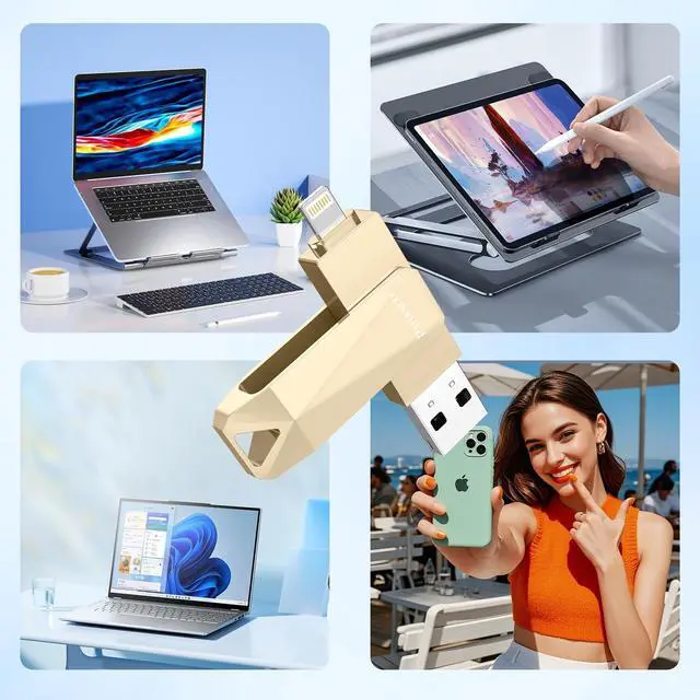 Certified iOS MFi Photo Stick for iPhone - Simplify Your StorageExperience the simplicity of our user-friendly photo stick for iPhone, certified by iOS MFi with the latest lightning connector. It effortlessly supports all iOS models with a Lightning port (iOS 9.0 or above), including iPhone 14/X/XS/XS Max/XR/11/11 Pro/12/12 Pro/13, iPad Air/Mini 4/iPad/PC, and more. Before using this photo stick for iPhone, simply download the app from the App Store. ^^ One-Click Backup USB Flash Drive - Lightning Fast and Plug & PlaySay goodbye to complicated file transfers! Our photo stick for iPhone is a plug-and-play device that allows you to enjoy movies and music directly from the flash drive while you're on the go.