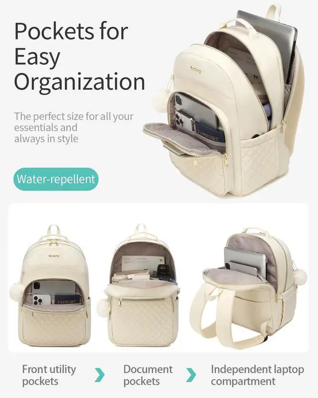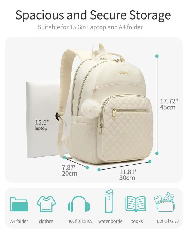 Useful Pockets: Featuring a separate padded laptop compartment that holds and protects a 16 / 17 inch laptop, ensuring your tech stays safe on the go. The large main compartment is roomy for daily necessities, such as folders, text books, lunch box and electronic. Quick access front pockets are perfect for keeping all of your smaller items secure. On the outside, it has two water bottle pockets and a back anti-theft pocket for secure storage ^^ Durable