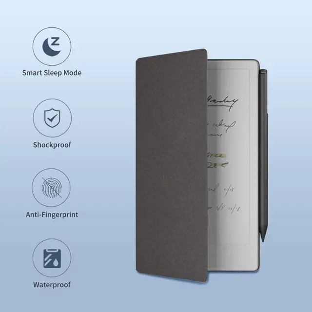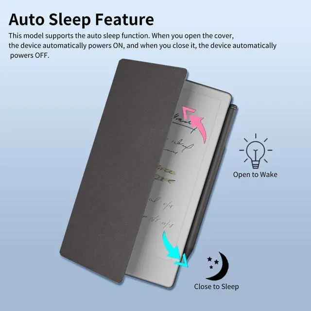 Perfect Fit for reMarkable Paper Pro MoveSpecifically designed to snugly fit your reMarkable Paper Pro Move, ensuring full protection without bulk. ^^ Supports Auto Sleep FeatureThis case is equipped with an auto sleep function. The device automatically turns ON when you open the cover and turns OFF when you close it. ^^ Built-in Pen Holder and Nibs HolderAccording to the pen's own adsorption gives the marker/marker plus a home. Keep your stylus secure, while the small refill holder allows for easy access, simple and practical. ^^ Slim and Lightweight DesignSimple and portable, this cover is easy to carry without adding unnecessary bulk to your e-reader.