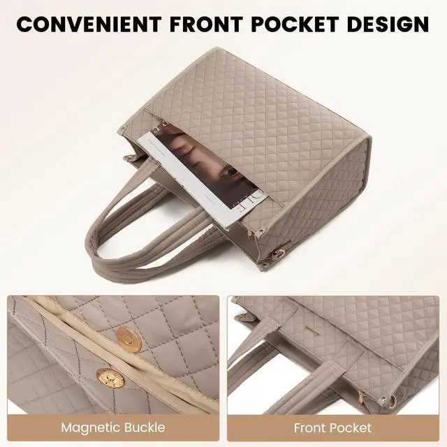LOVEVOOK Women's Laptop Bag Introduction: This women's laptop handbag combines embroidery thread with modern fashion. The handle is also padded with cotton, and the specially designed pocket on the front makes this handbag a classic. No matter where you go, the lovevook laptop tote bag perfectly reflects your elegant and beautiful style. ^^