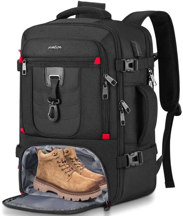 Large size: 1812.57 in. Meets airline carry-on requirements, applicable for airlines such as Easy Jet, Spirit, Jet Blue, Frontier, United. Fits overhead luggage rack and underseat. ^^ Deformation DesignWhen you store shoes on shoe compartment, main compartment area will be reduced to provide more space for shoe compartment. When you don't need to carry shoes, the bottom pocket can be folded so that you can carry more items in main compartment. A combination of shoes bag and travel backpack. You must not miss this NEW backpack! ^^ USB Charging PortSmart backpack with a USB port to charge your device while on the go. Built-in charging cable and mesh pocket for Powerbank. (Please note that the device cannot be automatically supplied with power. The USB charging port is only for easy charging. ) ^^ DURABLE & COMFORTABLEThe luggage backpack is made of durable and water-resistant fabric which will not rip, tear or scratch but also lightweight. Breathable mesh pads on shoulder straps make it convenient to carry for long duration. It's the great Brithday, Thanksgiving, Christmas and New Year gift idea for man, women, father, mother, boys, girls, teens, etc.