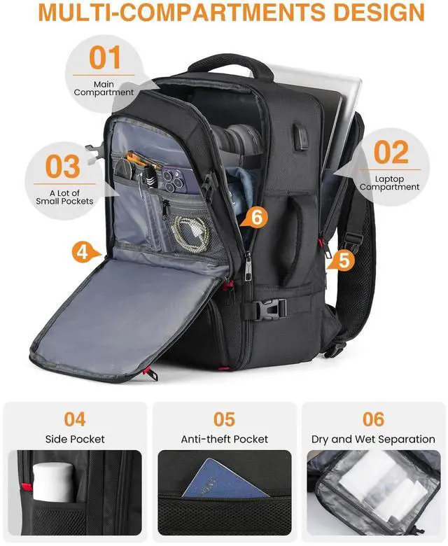 Design for TravelOur backpacks allow you to quickly and neatly store your travel essentials - The main box compartment has an X buckle to keep your clothes in place. The three packing cubes will be your helper. Waterproof wet bag to store your toiletries. Plenty of small pockets for small items. Thickened shoulder straps and chest buckles allow you to carry heavier backpacks without feeling stress. 180 degree zipper closure helps you pass through the security check quickly. ^^ Airline Approved