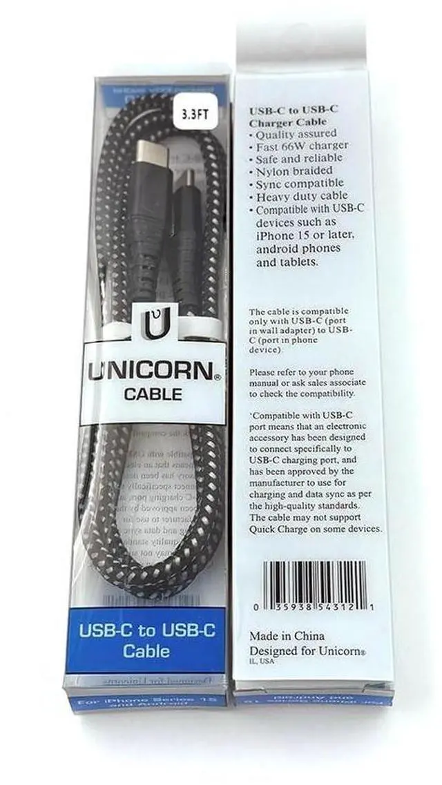 UNICORN'S SUPREME USB-C to USB-C CABLES ^^ FOR ANDROID PHONE and iPHONE SERIES 15 ^^ 4 COLORS ^^ 50