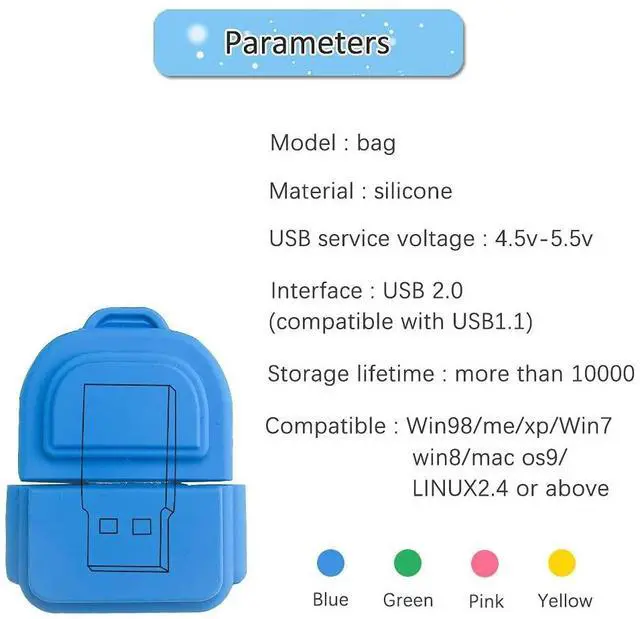 Cute USB Drive: pack of 5 novelty 8GB backpack shape flash drive, featuring strong and soft silicone protective cap, shockproof and stylish