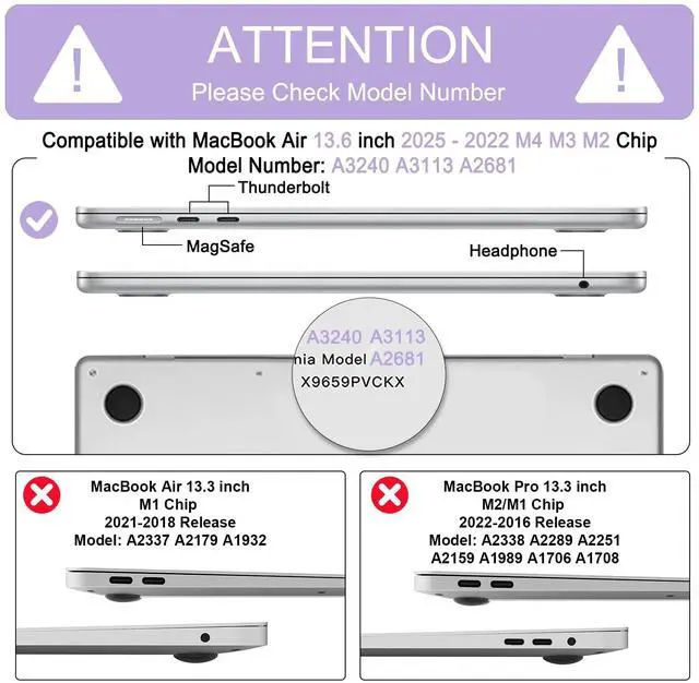 Full Protection: The top case is made of high-quality 3D hard plastic to prevent fingerprints, scratches, oil, and any other damage. The all-inclusive design ensures that your 13.6 -inch MacBook air device is fully protected ^^
