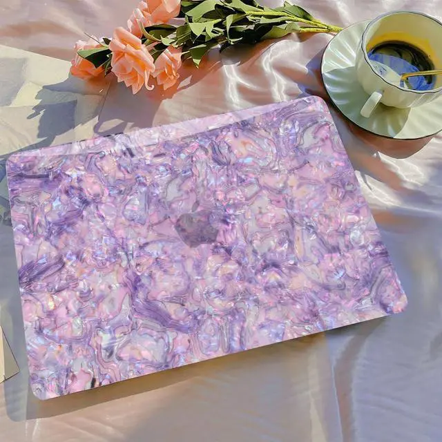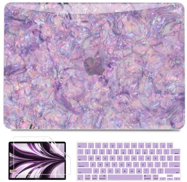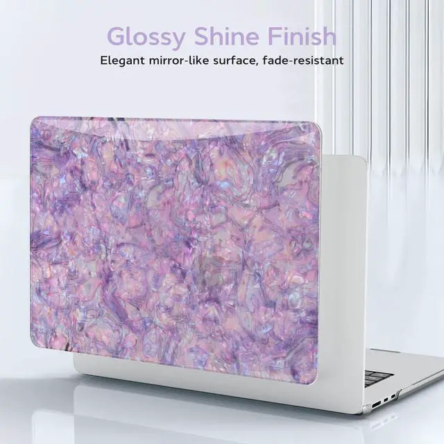 Complete Bundle: The package includes 1 glitter purple pearl shell top case, 1 matte clear bottom case, 1 purple keyboard cover, and 1 screen protector, offering comprehensive protection for your device