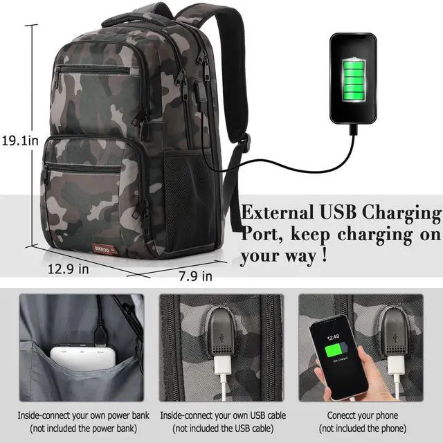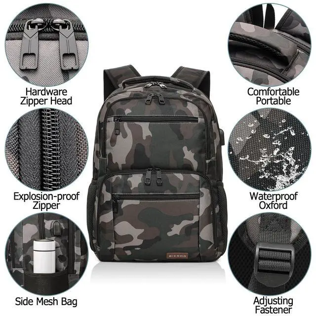 BIKROD Backpack for Boys Men, School Backpack for Teens Girls, Lightweight Casual High School Bookbag, Daily-use Travel Laptop Backpack with USB Charging Port Fits 15.6 Inch Notebook