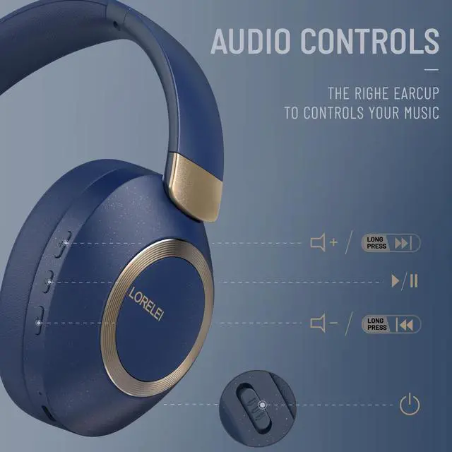 LORELEI B-C6 Wireless Over Ear Headphones, 50H Playtime Foldable Lightweight Bluetooth Headsets, Deep Bass, Built-in Microphone, Memory Foam Earmuff, for Travel, Home Office (Navy Blue)