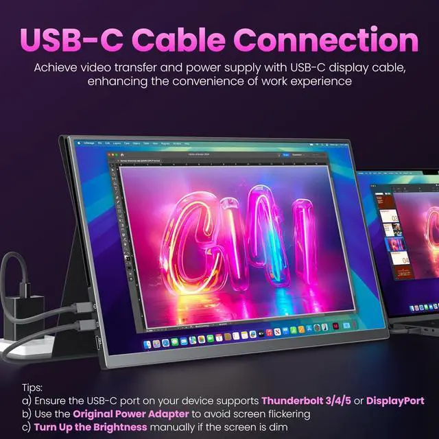 Plug & Play (NOTE: your device must have Thunderbolt 3/4/5 or Full-featured USB-C port). If you meet the issue of screen flickering, normally caused by insufficient power supply, then please use the original power adapter ^^ Eye Care, Flicker-Free and