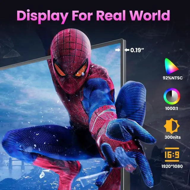 Portable: Boasting a 3-sided frameless bezel and lightweight build, this travel monitor weighs 2.34 lbs (net weight) or 4.15 lbs (monitor with its cover case) slim enough to slip into your bag for travel, work, or daily mobility. Whether you're in the office, at a coffee shop or at a friend's house, the portable laptop monitor makes it easy to take it out of your bag and enjoy your second screen anytime, anywhere ^^