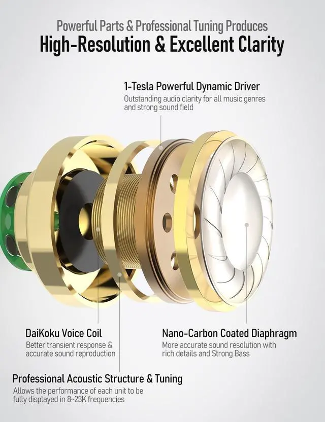 ^^ Appreciating as Musician: Professional acoustic architecture, sophisticated tuning, noise isolating, 1-Tesla powerful drivers, gold plated 3.5 mm & MMCX jack and 16-wire OFC braided cord, make Vibes 201C in-ear-monitor level headphones for musician, reproducing music amazingly natural with deep bass, crystal treble and full mediant.