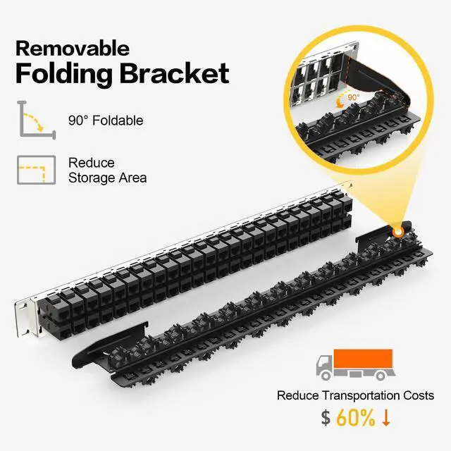 The support bar adds stability and prevents the cables from getting tangled or damaged. ^^ Easy InstallationThe fold design of this keystone patch panel allows for effortless installation. Simply insert the CAT6 keystone jacks into the blank slots, and you're ready to connect and organize your network cables.
