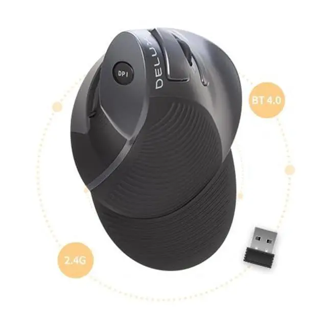 Dual-mode ConnectionStable dual-mode connection: Equipped with a 2.4G USB receiver and BT1, BT2, up to 10m (32ft) efficient distance, plug and play, easy and convenient for your work. Use with up to 3 devices and easy shift through the mode button ^^ 3 Adjustable DPI Levels800-1200 (default) -1600, 3 Gear DPI which would be easily shifted according to your working requirement by pressing the DPI button (behind the scroll wheel). Equipped with a sensitive optical engine, providing smooth and precise tracking on a wide range of surfaces ^^ Removable Wrist RestHumanized wrist rest design, let your forearm and vertical mouse be a whole part and make your wrist lift from the ground and rest on the comfortable pad, which protects your wrist from friction when moving the mouse ^^ Widely CompatibilityCompatible with Windows XP, Vista, 7, 8, 10, 11 operating system. Fits for different devices, Laptop, PC Computer, Notebook and