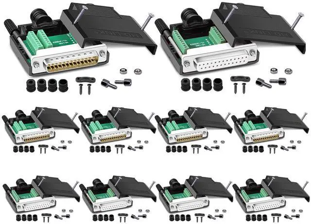 These DB25 Male Female Solderless Connectors are used to terminate the connection type of a cable and facilitate commissioning equipment of project. They can easily be connected to a custom length cable as well as create a custom pinout, creating a permanent and durable connection for all applications. These connectors are made with high-quality materials to ensure durability and a long life.