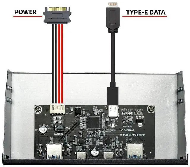 This problem can be easily solved by using this USB 3.0 adapter with extra SATA power cable. Easy installation and huge expansion for your PC casing. Quickly adds ports through available 20-pin USB 3.2 /USB 3.1 Key-A Type-E headers for connecting a variety of external USB devices (Make sure that your motherboard have Type-E headersbefore buying). The Type-C Female port only transfer the usb 3.1 / 3.0 data and power, can't connect usb-c video/audio/thunderbolt device.