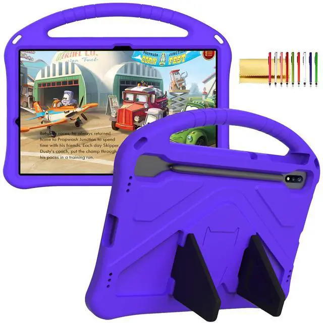Features: Shock ProtectionMade of ultra-light, skin-friendly, safe and non-toxic foam material, protects your tablet from daily bumps and scrapes. Precise CutoutsCustomized openings allow to access to all ports, buttons and cameras without removing the case. Top HandleAnti-slip and comfortable grip handle is great for outdoor activities, little hand can also easy to carry it anywhere. Stable StandBuilt-in 2 foldable bases to prop your tablet up on the desk for hands-free horizontal viewing or typing.