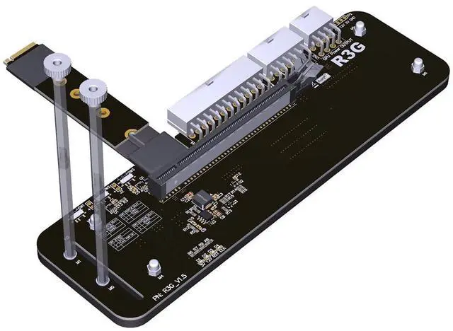 Installation Steps: 1. Install the hexagonal copper pillar and insert the graphics card into the PCIe x16 slot. The screw is tightened so that the graphics card will not shake or fall off. 2. Install ATX power supply or D power supply, including graphics card power cord should also be connected, after installed, D power supply will light orange lights. 3. You can plug in the M. 2 cable when the computer is off. After power on, the ATX power supply will automatically start the fan to turn. If you use the D power supply, the green light will turn on. At this time, the R3G board will turn on two green lights. The system will recognize the card automatically. Please install the graphics card driver. The installation of the driving process may prompt the computer to restart. 4. finish.