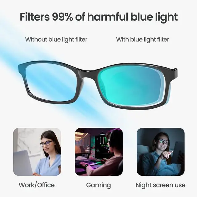 BEYOND BLUE BLOCKING: 8 Advanced Lens Coatings including Anti-Glare and Smudge-Resistance. Blue Cut lenses and computer glasses protect against screen-induced eye strain, keeping your VISION SHARP AND PRODUCTIVITY HIGH ^^