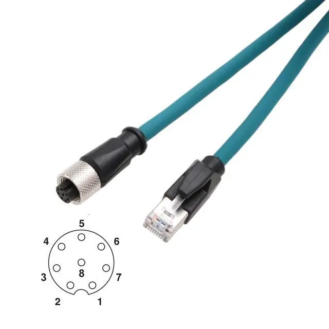 Ethernet M12 8-pin A-coding CAT-7e cable, 10 meter