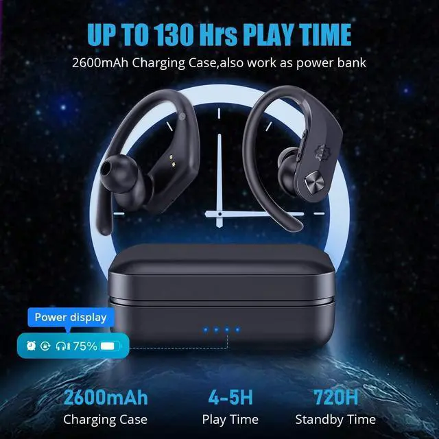 Sport Wireless Headphones Earbuds, WixGear Bluetooth 5.0 Wireless Over Ear Sport Headphones with Touch Control, and Charging Case Stereo Deep Bass Sound, 30H Playtime Sweat-Proof Bluetooth Earphones with microphoneIt's time to keep up your fitness levels. Whether you're lifting weights or running out, push yourself to go the extra mile with this New WixGear Sport Wireless Earbuds. REASONS WHY YOU SHOULD HAVE THIS WIXGEAR OVER EAR BLUETOOTH SPORT WIRELESS EARBUDS: It remains fixed in your earsNo matter how vigorous the activity you are in, it will remain fixed in your ears making you feel more secure and not having to worry about losing your earbuds or falling out. It has longer battery lifeThe battery life of this over ear wireless earbuds is excellent with 130 hours of continuous playtime. You can also use the 2600 MAH charging case to charge your other devices. It is IPX7 waterproofThis wireless earbuds sport has a sturdy and rubber exterior that makes it a waterproof Bluetooth headphones. It can withstand sweat and rain while you are running or working out. It has control press buttonsThis wireless earbuds over ear hook will let you switch songs, adjust the volume and answer calls anytime and anywhere you are by just pressing a button. It has an excellent audio qualityThis wireless earbuds with ear hooks produces an energetic sound while you are running or working out. It fits to your ears making the sound quality of this over the ear Bluetooth earbuds even better. Grab one of this new wireless earbuds sport, the best sports earbuds for running, working out and keeping fit!
