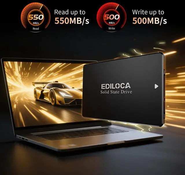 High-Speed Performance UpgradeAchieve blazing-fast speeds of 550MB/s read and 500MB/s write with EDILOCA 2.5" SATA III SSD, 3x faster than traditional HDDs. Perfect for accelerating system boot, game loading, and large file transfers. (The interface SATA Rev. 3.0 (6Gb/s) is backward compatible with SATA Rev. 2.0. ) ^^ Advanced 3D TLC NAND TechnologyEngineered with 3D TLC NAND flash memory, our SSD ensures high-density storage and extended lifespan. Precision-crafted components and rigorous testing deliver 99.9 % data integrity under heavy workloads, ideal for professionals, gamers, and daily users.