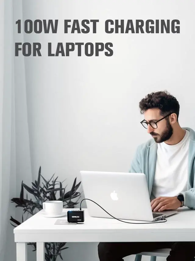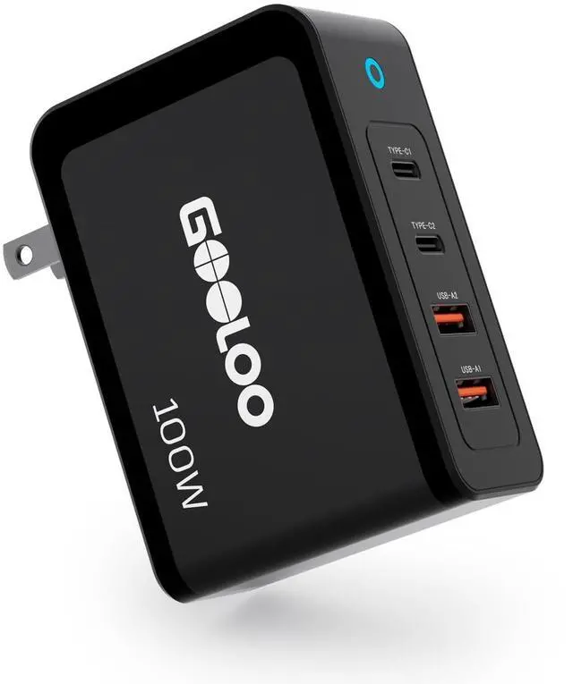 Multiport charger: Gooloo GA01 100W USB-C charger helps people experience the convenience of charging two laptops at high speed or powering up to four devices simultaneously. When a single device is connected to one of the USB-C ports, it can enjoy a maximum 100W charging speed.
