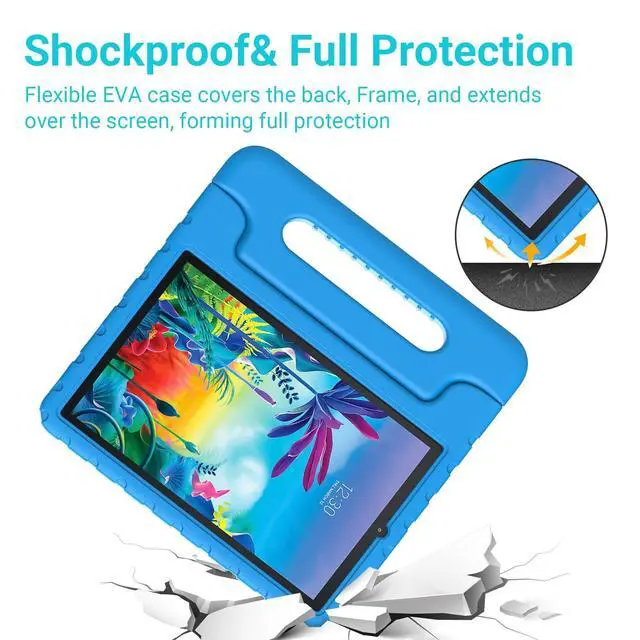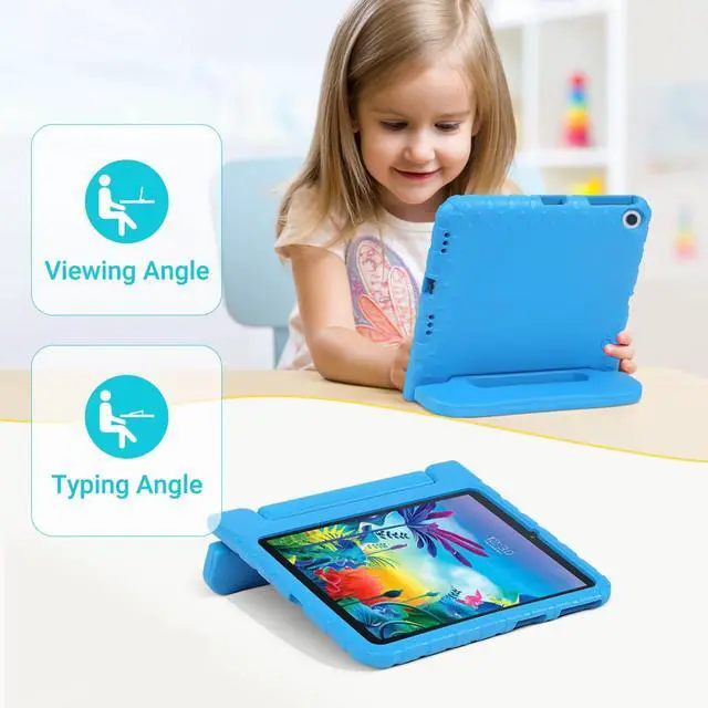 [For LG G Pad 5 10.1 ] Designed only for LG G Pad 5 10.1 FHD 2019 tablet. NOT compatible with any other models. Please check the model number on the back/packing box of your tablet before purchase ^^ [Lightweight] Constructed from shock-absorbing and impact-resistant non-toxic EVA foam material, and this Super lightweight kids case will efficiently protect your tablet from scratching and shocking ^^ [Portable Design] Large handle designed for comfortable one-hand grip to easily carry and travel. The handle can be folded, stand with 2 angles for convenient viewing, typing, learning and entertainment.