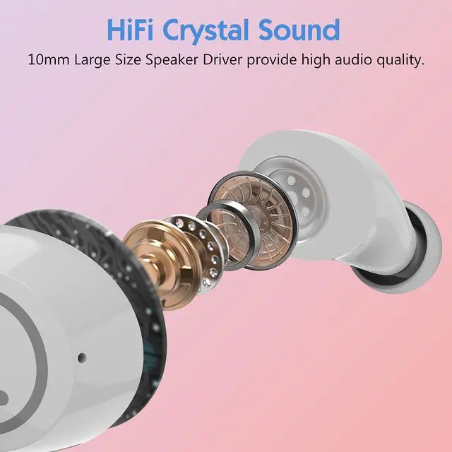 Sound Quality: With the improved instrument isolation and richer sound components, the TWS wireless earbuds built-in dual microphone, dynamic 10mm driver that produces impressive sound with deep bass. Feels like hearing on the scene, providing a reality sound for you. Feelings of listening, talking and wearing are all improved