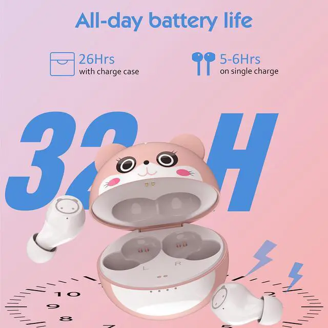 Powerful: This pink wireless earbuds uses a cute cat shape and equip with Bluetooth 5.0 system. The cute appearance makes it more attractive. The powerful chip makes it have lower latency, more stable connection and lower power consumption. Wireless earphones for work, home and office.
