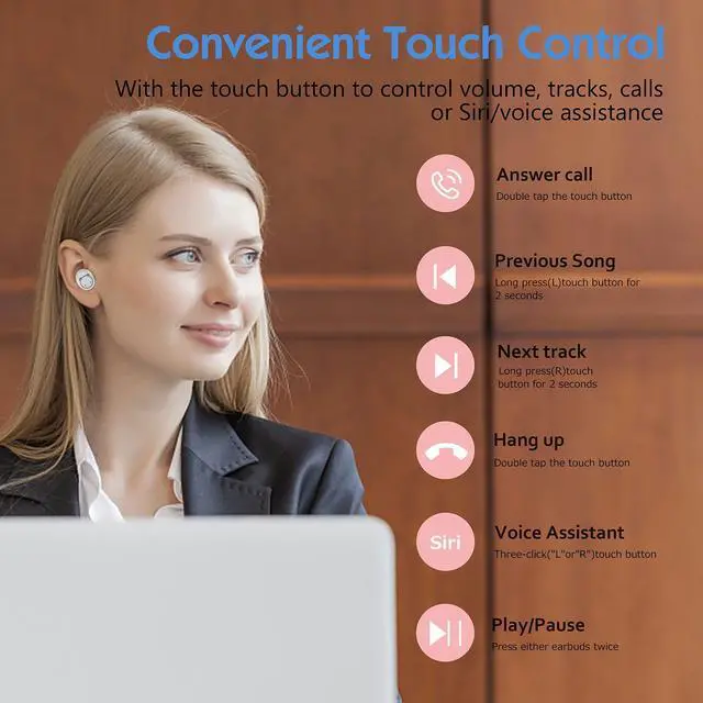 Hours Upgraded Ultra Long Playback: Pink bluetooth earbuds can offer 5-6 hours of continuous playtime on single charge. In addition, the compact and lightweight magnetic charging case provide wireless charging 6 times. It can fully meet your need of listening to the music full-day long and without worrying about battery shortage when going out. ^^ One Click Manipulation And Comfortable Wearing: One touch control button supports multiple functions, such as play/pause music, answer/hang up calls, next/previous song, activate Siri, etc. With the ergonomic craft, Bluetooth earbuds offer a whole new wearing experience, small size and lightweight make it burden-free on your ears, just wear them and forget about them. ^^ High Fidelity