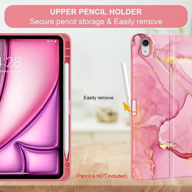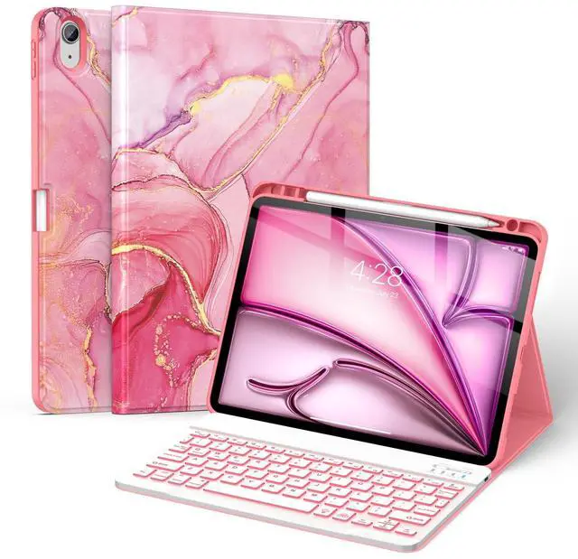 (Tips: Pencil is NOT included) ^^ Anti-Slip Groove The keyboard case compatible with Air 11 & iPad Air 5th/4th is lined with 2 non-slip grooves that support the iPad to stand at two different viewing angles: 120 and 130. You can change the angle of the iPad according to your work, movie watching, or typing needs ^^ Auto Sleep/Wake The built-in magnets of keyboard cover for iPad Air support with automatically sleep and wake function to protect and save the battery life, and prolonging the time you use your iPad ^^ You Will Get 1 x Case for iPad Air 11 inch (M3/M2) & Air 5th/4th Generation, 1 x Bluetooth keyboard, 1x Type-C charging cable, 1 x user guide.