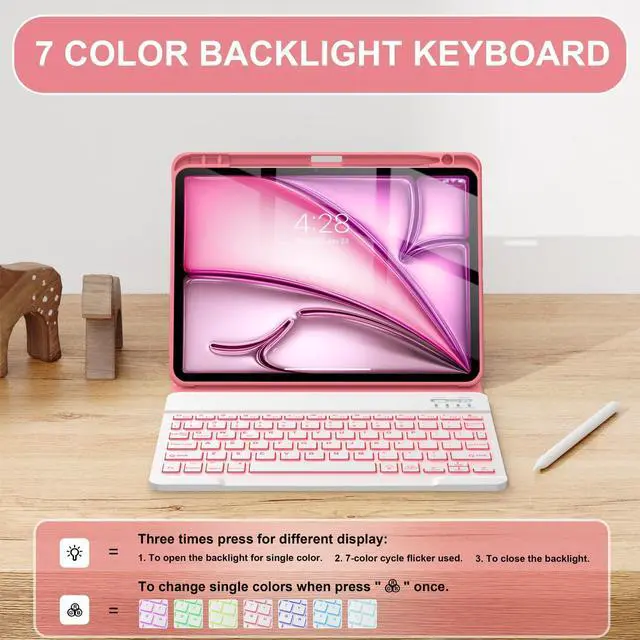 Number: A2316/A2324/A2325/A2072). Not fit any other iPad models ^^ 7-Color Baclit Detachable Keyboard The keyboard for iPad Air 11 inch has 7 backlight colors to change, allowing you to switch to your favorite light color at any time. Magnetic detachable design makes it easier for you to use the keyboard ^^ Rechargeable Battery With a large battery capacity for long time use. Keyboard will be fully charged around 3-4 hours for the iPad Air 11/Air 5/Air 4.