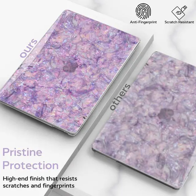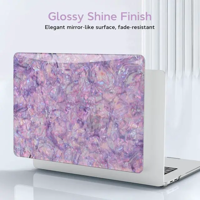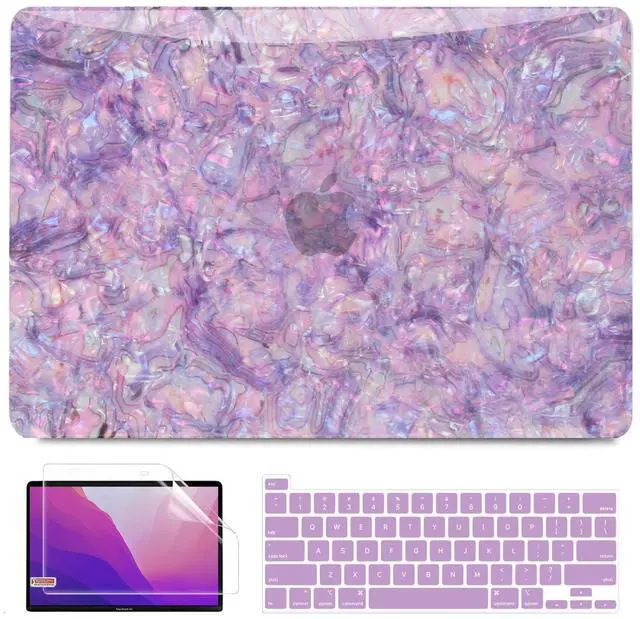 Complete Bundle: The package includes 1 glitter purple pearl shell top case, 1 matte clear bottom case, 1 purple keyboard cover, and 2 screen protector, offering comprehensive protection for your device