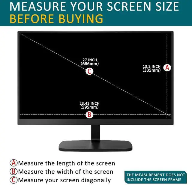 Please verify your screen width and height before ordering: 2 Pack 27 Inch Matte Anti Glare Screen Protector for Diagonal 27 Inch Desktop with 16:9 Widescreen Monitor, Standard/Curved Monitor &Touchscreen, Eye Protection & Anti Scratch Filter( 23.54 Inch W x 13.27 Inch H) ^^
