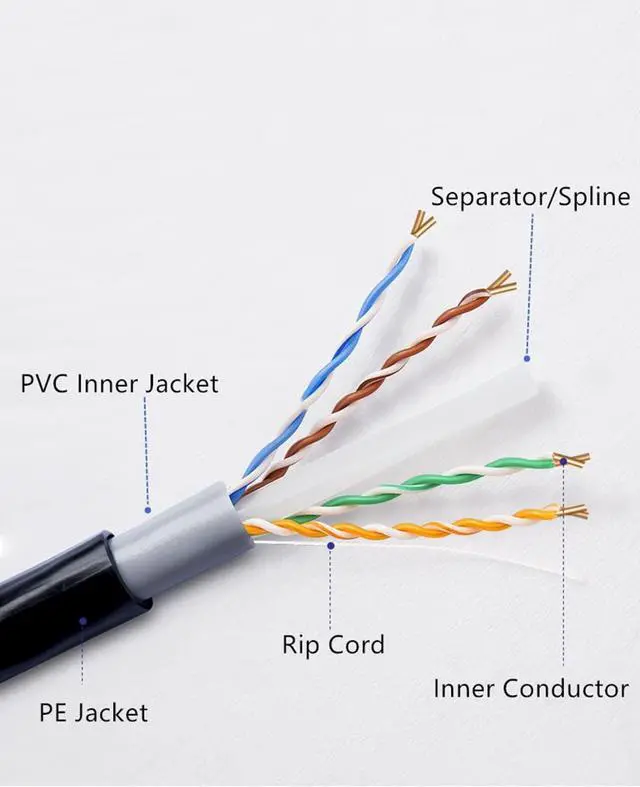 Its waterproof direct burial rating and four twisted pairs with a PVC cross separator reduce noise for a clean, uninterrupted connection. This cross flexi-core design also makes for a more durable cable that wont bend or break. This cable was specifically designed for outdoor runs and direct burial installations, making it perfect for a wide range of applications, including home and office networks, server connections, and outdoor installations. It can be installed with or without a conduit, providing flexibility and ease of use for any installation project. With its compatibility with a wide range of devices, including routers, switches, printers, modems, scanners, laptops, computers, POE cameras, gaming consoles, televisions, network switches, and more, this Cat6 Ethernet cable is an ideal choice for any networking