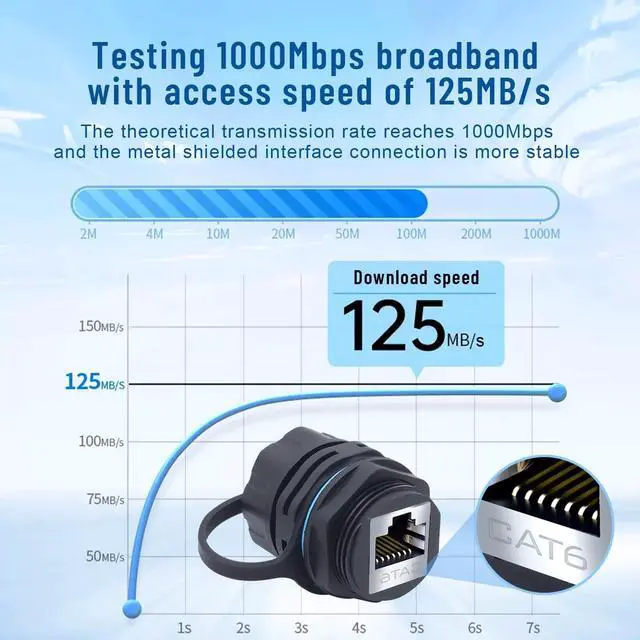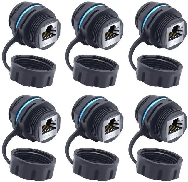 Shielded RJ45 female to female field installable coupler. Silicon rings and clamping nuts provide the perfect waterproof and excellent sealing, which is safe for indoor and outdoor ethernet connection. Provides feed-through Cat5/5e/6 ethernet connectivity for data and PoE in industrial environments. ^^ Use shielded CAT6 standard provides performance of up to 250 MHz and backwards compatible with CAT5/CAT5E. Transfer speed up to 1Gbps (1000Mbps). Can faster transfer speeds and better shielding performance ^^ RJ45 female to female field installable coupler, no soldering, no installation tools, just plug the standard crystal head directly for quick installation.