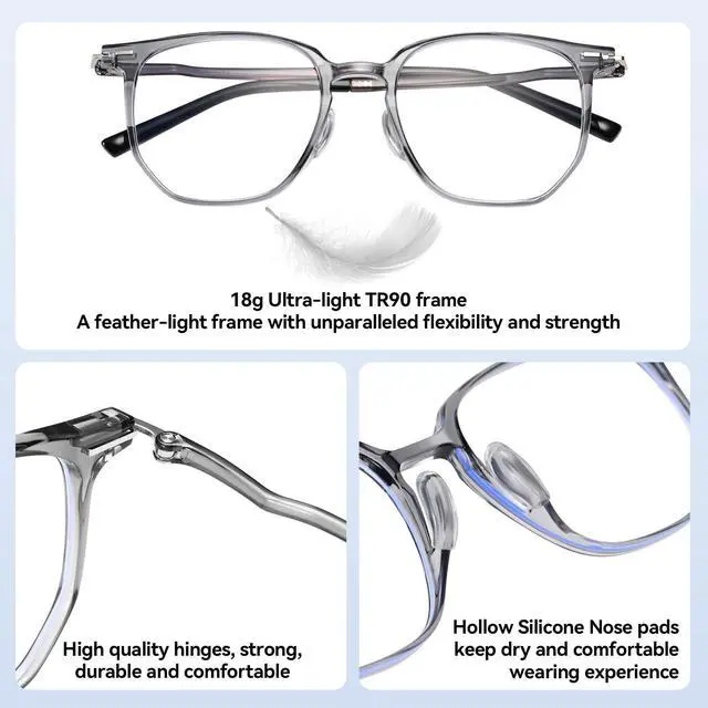 & All-Day Comfort: Weighing only ~18g, the TR90 frame is virtually weightless. Perfect for long workdays, studying, or streaming. Secure, No-Slip Fit with
