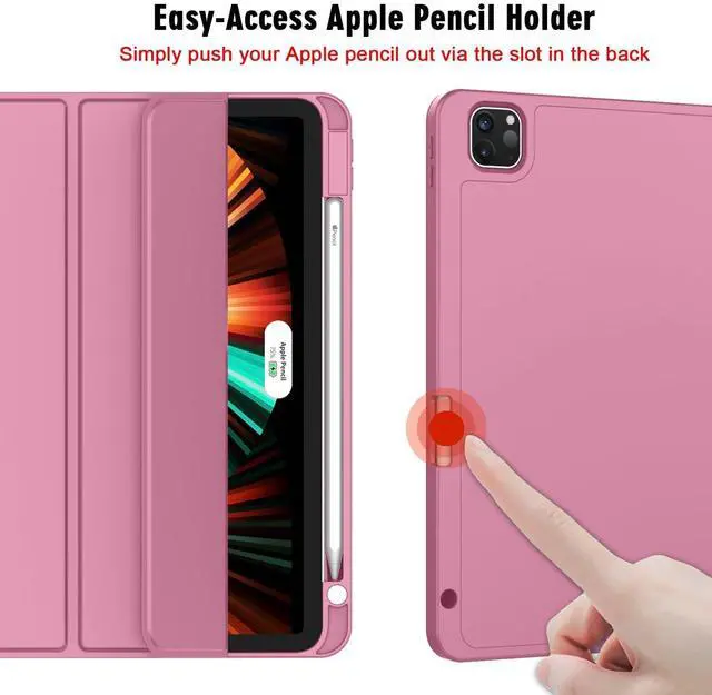ZryXal New iPad Pro 12.9 Inch Case 2022/2021/2020(6th/5th/4th Gen) with Pencil Holder,Smart Case [Support Touch ID and Auto Wake/Sleep] with Auto 2nd Gen Pencil Charging (Pale Violet Red)