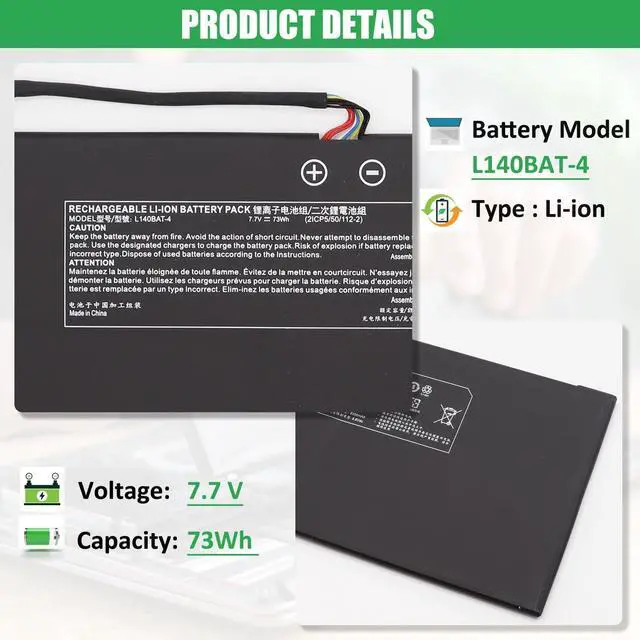 COMPATIBLE PART NUMBER: Battery L140BAT-4, 2ICP5/50/112-2, 6-87-L140S-32B01, 6-87-L140S-72B01 ^^