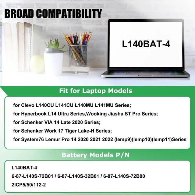 COMPATIBLE LAPTOP MODELS: Fit for Clevo L140CU L141CU L140MU L141MU Series, Hyperbook L14 Ultra Series, Wooking Jiasha ST Pro Series, Schenker VIA 14 Late 2020 Series, Schenker Work 17 Tiger Lake-H Series, System76 Lemur Pro 14 2020 2021 2022 (lemp9) (lemp10) (lemp11) Series ^^