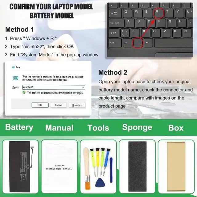 IMPORTANT NOTE: Please ensure that your original battery model matches the one in the picture or is consistent with the compatible model list.