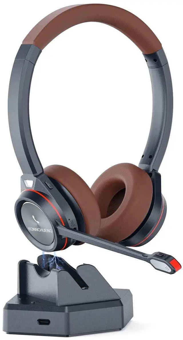 ADVANCED QUALCOMM 5.1 BLUETOOTH TECHNOLOGY The bluetooth headset with microphone is equipped with a QCC3024 chip known for its fast transmission, stable connection, suitable for call center and office use. APTX and low lattency technology supports high speed real-time and high fidelity audio transmission, allowing you to enjoy worry-free and handsfree clear communication. ^^ IN-BUILT USB ADAPTER FOR PC The wireless headset with unique feature of charge base in-built with Bluetooth receiver enables connection with PC without Bluetooth function. There is no need of additional USB Bluetooth adapter. Just connect the charge dock with computer via Type C cable, you can move around and enjoy handsfree calls from PC.