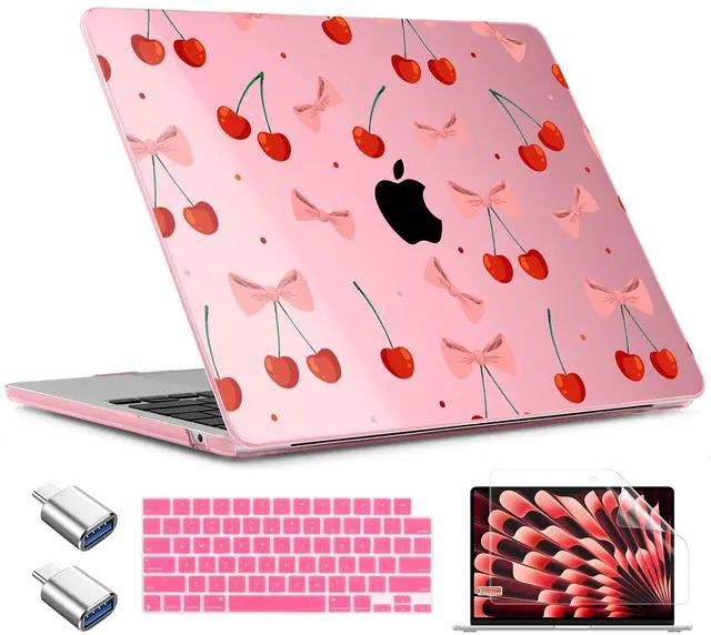 TWOLSKOO Compatible with M4 MacBook Air 13.6 inch Case 2025-2022 Release M4 A3240 M3 A3113 M2 A2681, Plastic Hard Shell & Keyboard Cover & Type C Adapter & Screen Protector, Cute Cherry