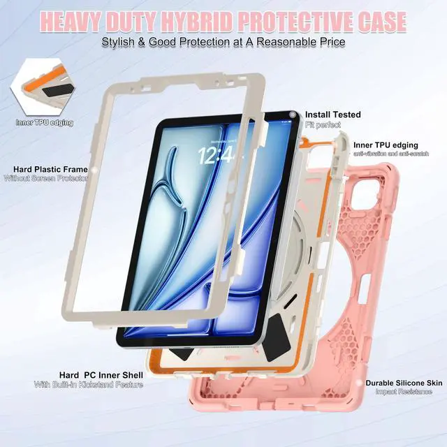 ^^ Removable/Adjustable Carrying Strap: Portable shoulder strap is kid-friendly for carrying the ipad air 7th/6th gen 2025/2024 & iPad air 5 / 4 2022/2020 & ipad pro 11 4th/3rd/2nd/1st 2022/2021/2020/2018 case when you are at work, on a trip or outdoors. you could even hang it behind the head rest of car seat or wherever you want. ^^ 3 Layer Hybrid Rugged